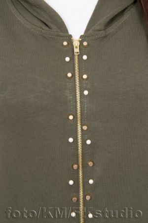 > DÁMSKA MIKINA S TROJŠTVRŤOVÝMI RUKÁVMI A S KAPUCŇOU ZELENÁ