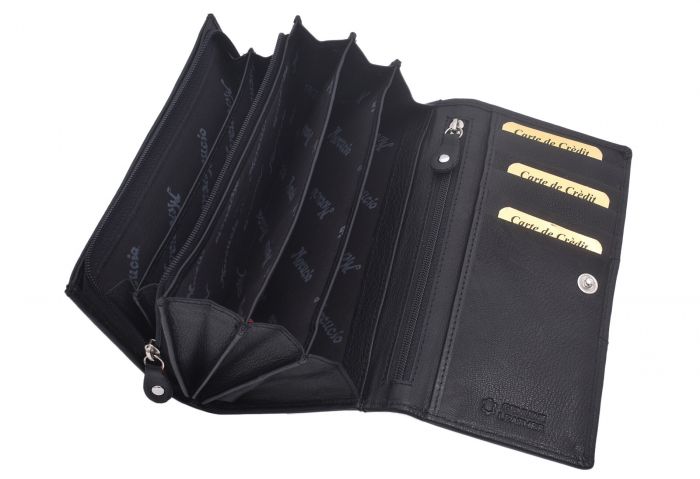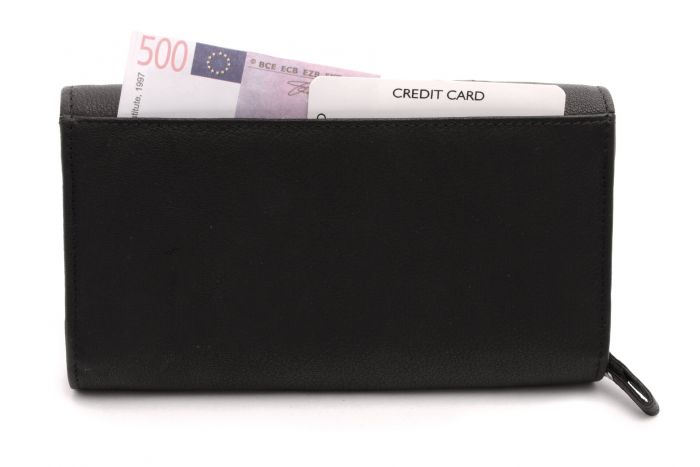 - dámska kožená peňaženka v čiernom odtieni s jemným zdobením